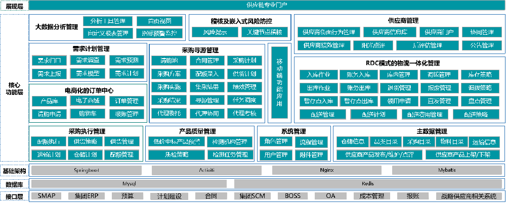 采购供应链系统:在可视化与透明化、合规与风险管理、敏捷与柔性、生态协作与共赢等方面帮助客户大大提升供应链管理水平。