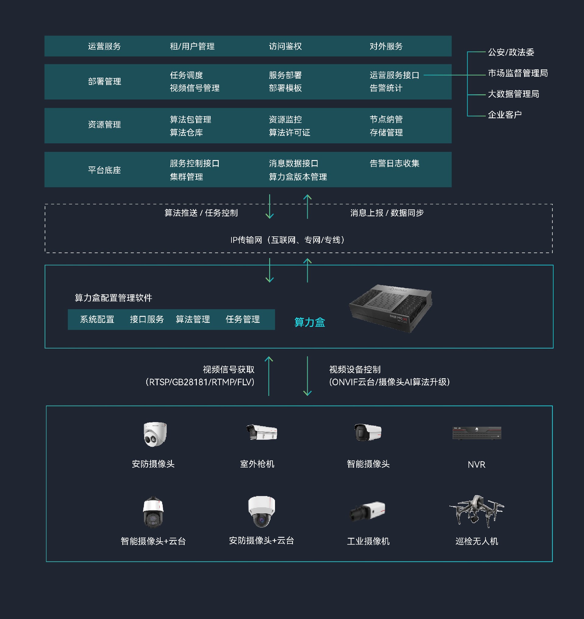 网思科技推出的Sage Basic A1边缘计算微服务器,专为智能视频应用而设计。该服务器支持多路视频编解码,高效适配市 场上所有AI算法,能够轻松应对各类智能视频分析任务。其应用领域广泛,涵盖智慧城市、智慧园区、智慧乡村、智慧校园 以及智慧安防等多个AI应用场景。此外,视频AI边缘算力盒产品包含云边协同管理系统、边缘算力盒配置管理软件以及算力 盒终端三部分,能够实现边缘侧的AI处理和快速响应,同时借助云边协同技术,可随时随地灵活部署检测任务和算法,为用 户带来前所未有的便捷和高效体验。